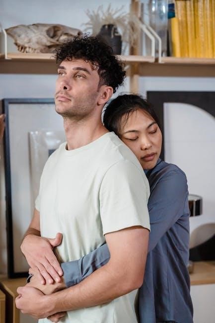 Emotionally Focused Therapy (EFT), the foundation of the Hold Me Tight approach, unfolds in three distinct stages. De-escalation focuses on calming the emotional intensity of negative cycles, creating a safe space for vulnerability. The workbook’s exercises guide couples in slowing down interactions and expressing underlying needs, rather than reactive behaviors.
